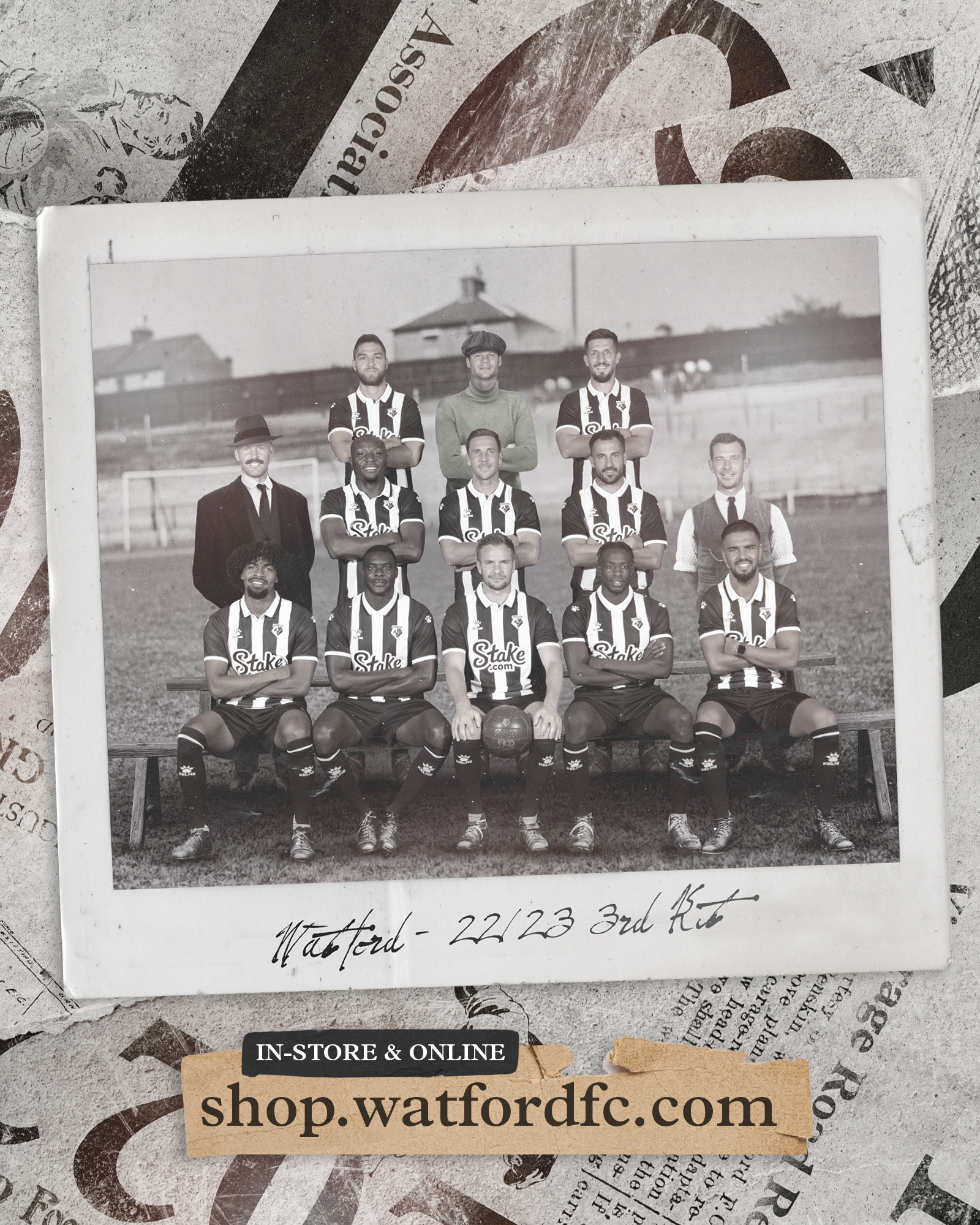 A heritage-inspired campaign celebrating 100 years of Watford FC’s home stadium. The promotional artwork paid homage to history by blending archival images of 1922 players with their 2022 counterparts wearing the new kit. A companion animation further emphasized the evolution of the club, bridging past and present in a striking visual narrative.